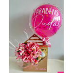 Este incrível conjunto de Flores e Chocolate é a perfeita manifestação de amor e carinho. Composto por 1 balão personalizado, que pode transmitir o seu sentimento de uma maneira única e singular. Acompanha uma elegante caixa de papelaria para enriquecer ainda mais o presente. Além disso, inclui um belo arranjo de flores naturais, escolhidas especialmente para encantar e agradar quem receber. E para finalizar, um delicioso estojo de Ferrero Rocher, oferecendo um gostinho indulgente ao conjunto. Perfeito para surpreender alguém especial.