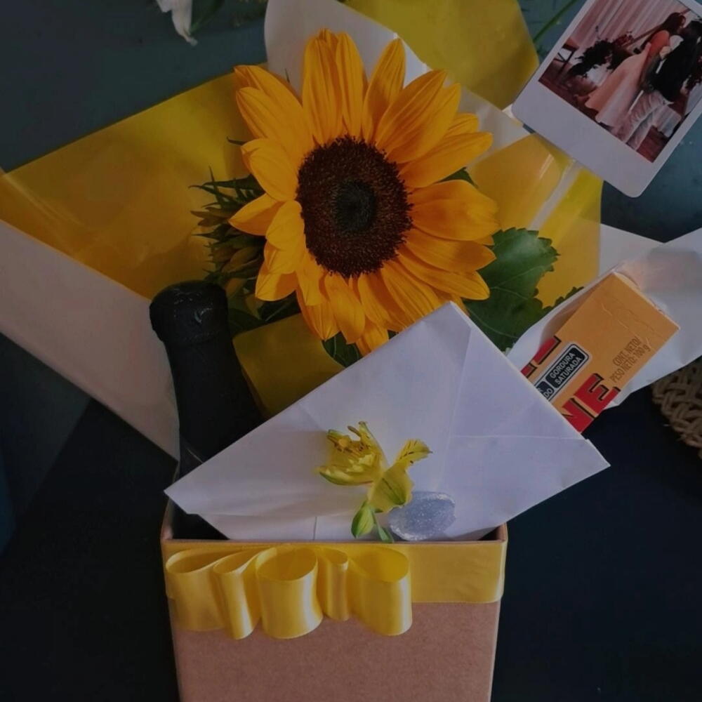 Encante alguém especial com esta cesta excepcional, perfeita para ocasiões especiais. A combinação inclui um girassol radiante, prometendo trazer um sorriso instantâneo a qualquer pessoa. Além disso, para acompanhar o brilho do girassol, uma unidade de mini espumante, perfeito para comemorar os bons momentos. E para adoçar o presente, um delicioso Toblerone, para desfrutar enquanto relembra belas memórias com as duas fotos estilo Polaroid incluídas. Um presente para aguçar os sentidos e aquecer o coração.