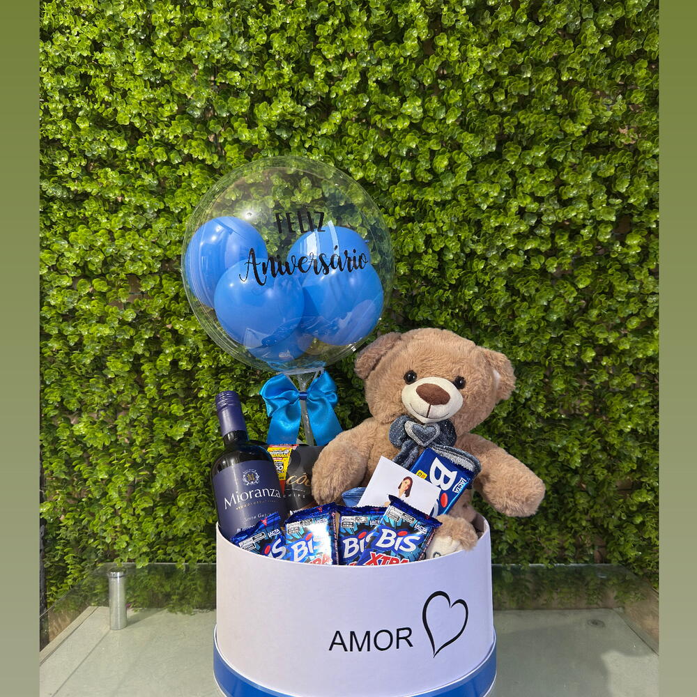 Um presente sofisticado, criativo e cheio de carinho para surpreender em grande estilo! ✨ Este item acompanha: 🧺 1 Box de Luxo personalizada, decorada com elegância e atenção aos detalhes 🍷 1 Garrafa de vinho – ideal para brindar momentos especiais 🐻 1 Pelúcia fofa 🍫 4 Bis Xtra + 1 Bis tradicional – para adoçar a surpresa 🥨 1 Salgadinho – toque crocante e divertido 📸 1 Foto personalizada, para eternizar uma lembrança especial 🎈 1 Balão personalizado, com nome ou frase à sua escolha Perfeita para aniversários, datas românticas ou para transformar qualquer ocasião em uma lembrança inesquecível! 💝