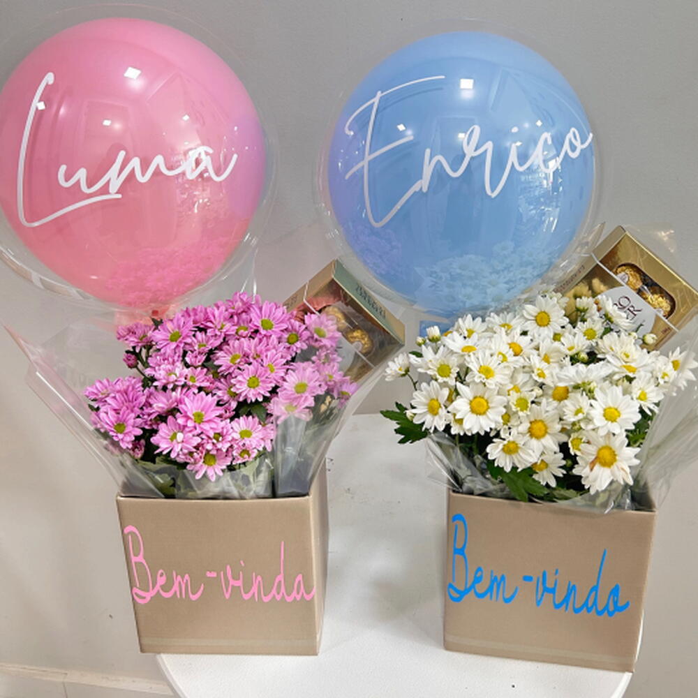 Esta adorável cesta de maternidade é o presente perfeito para acolher um novo bebé! Com um balão bubble personalizado que adiciona um toque especial, uma linda planta da época para alegrar o ambiente e um fino estojo de Ferrero Rocher para mimar os novos pais. Um mimo repleto de amor e carinho para celebrar este momento mágico.