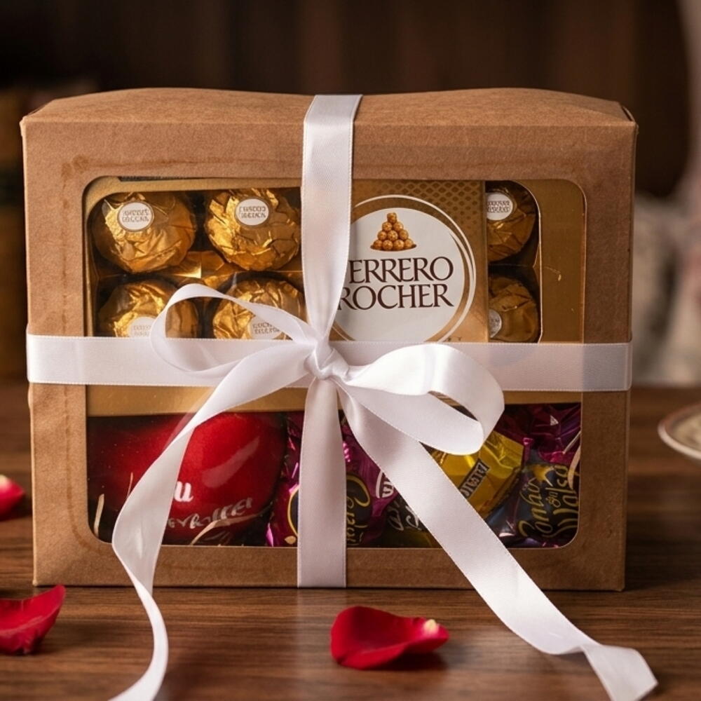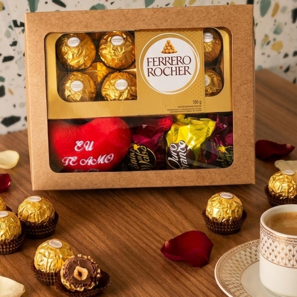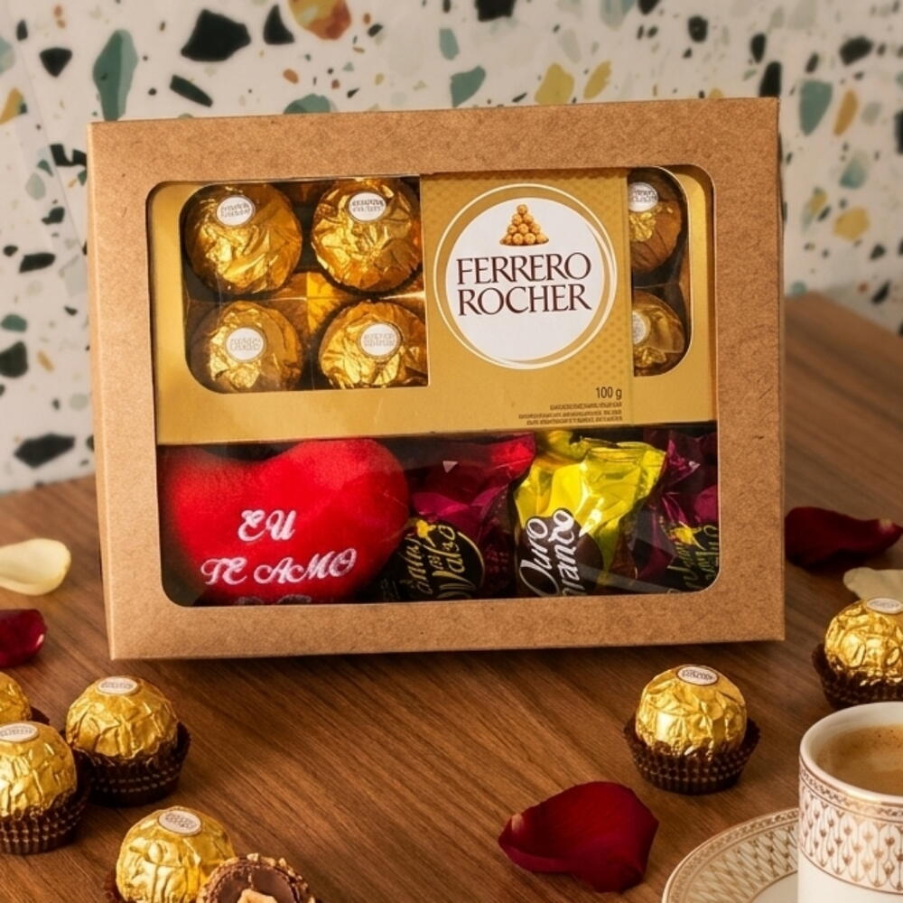sonho de valsa - 2 pcs ouro branco - 1 pcs pelúcia coração - 1 pcs ferrero 8 un - 1 pcs