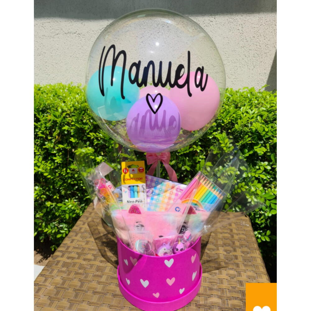 laço - 1 pcs caixa cartonada - 1 pcs embalagem celofane - 1 pcs balão bubble personalizado - 1 pcs estojo - 1 pcs conjunto de canetas - 1 pcs marca texto - 1 pcs conjunto de lapis de cor clips - 1 pcs borracha decorada - 1 pcs prendedor de papel - 1 pcs papel pequeno - 1 pcs