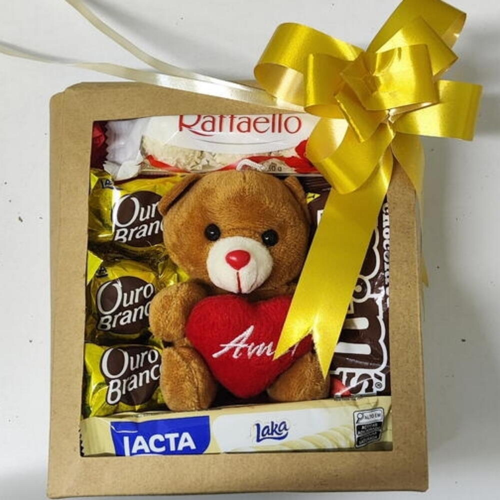 urso - 1 pcs ouro branco - 3 pcs rafaello trio - 1 pcs mms chocolate 45g - 1 pcs laka - 1 pcs