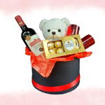 Este presente encantador é composto por um lindo ursinho de pelúcia que irá encantar a todos com sua fofura. Acompanhado de uma garrafa de vinho quinta do morgado de 750ml para desfrutar de uma experiência gustativa sofisticada. Para adoçar o momento, incluímos o exuberante e irresistível Ferrero Rocher com 8 unidades. Além disso, o conjunto vem com 2 taças em acrílico para tornar a degustação do vinho mais elegante. Para expressar seus sentimentos, um cartão personalizado está à disposição. Tudo é maravilhosamente acomodado numa caixa de tamanho médio com decoração e embalagem encantadoras, tornando este presente ainda mais especial.