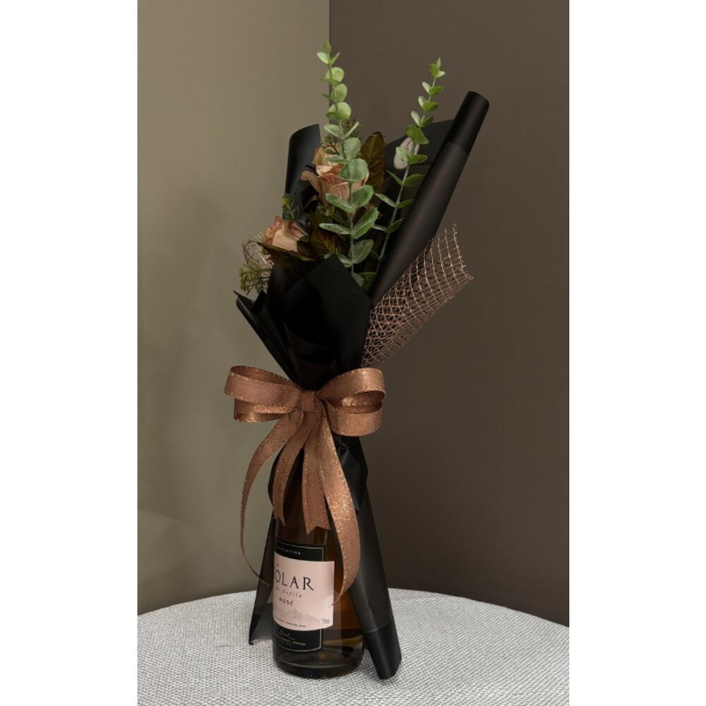 buquê de flores permanentes (consultar opções) - 1 pcs vinho 750ml (consultar opções) - 1 pcs