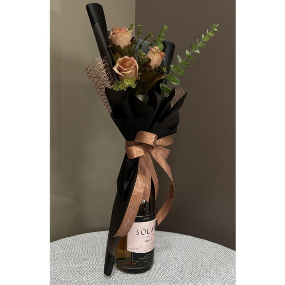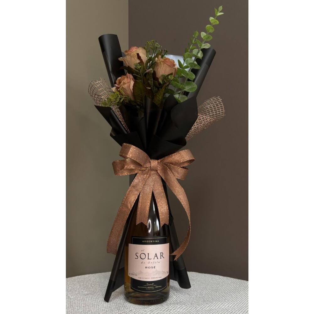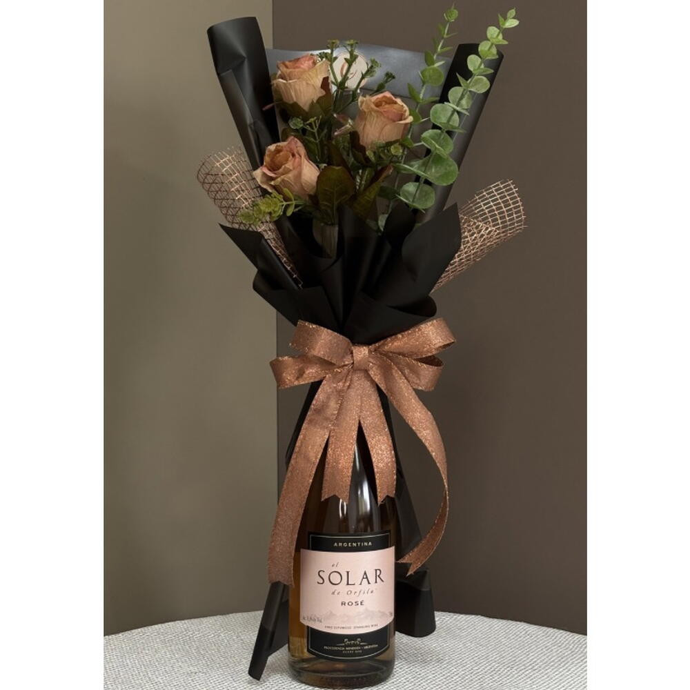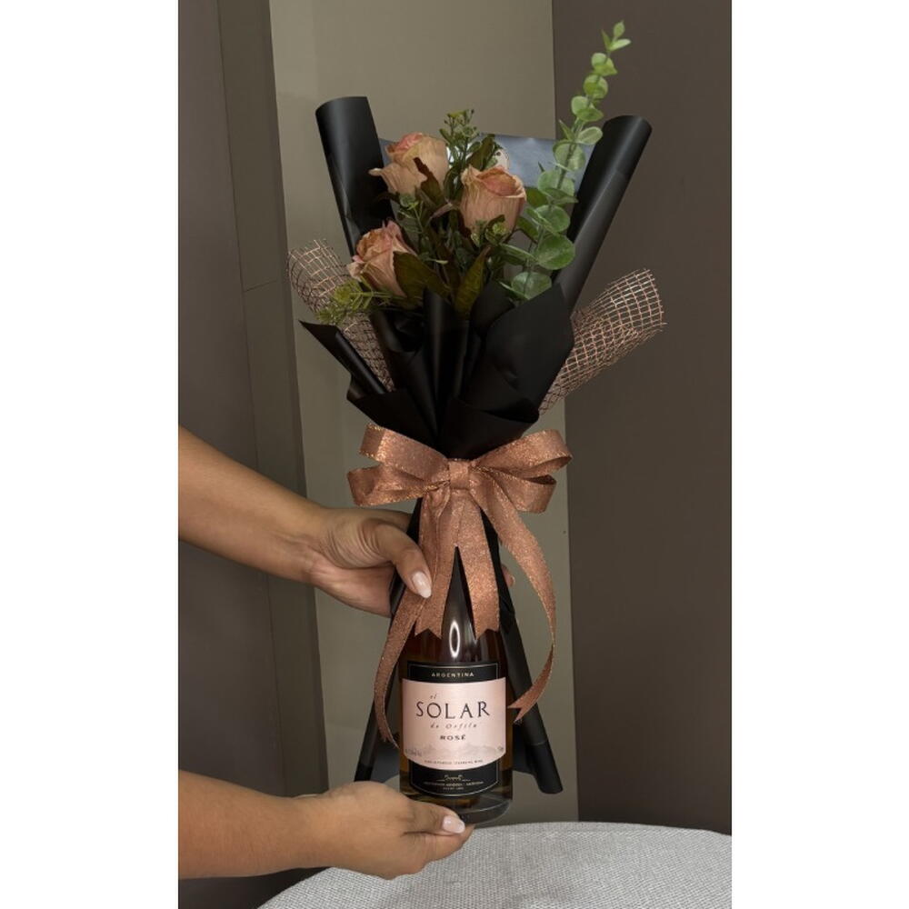 Este kit de presente magnífico abrange o melhor que a vida tem para oferecer! Contém uma garrafa de Vinho Espumante El Solar de Orfila Rosé 750ml, reconhecido por seu sabor inesquecível e aroma encantador. Ele vem acompanhado de um buquê de flores permanentes, que irá decorar qualquer espaço com sua beleza eterna. Este kit de presente é a opção certa para dias especiais e sem dúvida deixará uma impressão duradoura. OBS.: Verificar disponibilidade da bebida e flores. Sempre serão usados produtos de igual qualidade e beleza. Comunicação será realizada via chat.