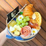 laço - 1 pcs uva - 1 pcs saco celofane - 1 pcs drip coffee - 1 pcs croissant amanteigado - 1 pcs tag - 1 pcs waffle americana - 1 pcs pão de frios - 1 pcs rosa de lombo canadense - 1 pcs bandeja redonda 20cm - 1 pcs suco de laranja natural na garrafa de vidro 300ml - 1 pcs macaron francês rosa - 1 pcs queijo mussarela em formato de coração - 1 pcs