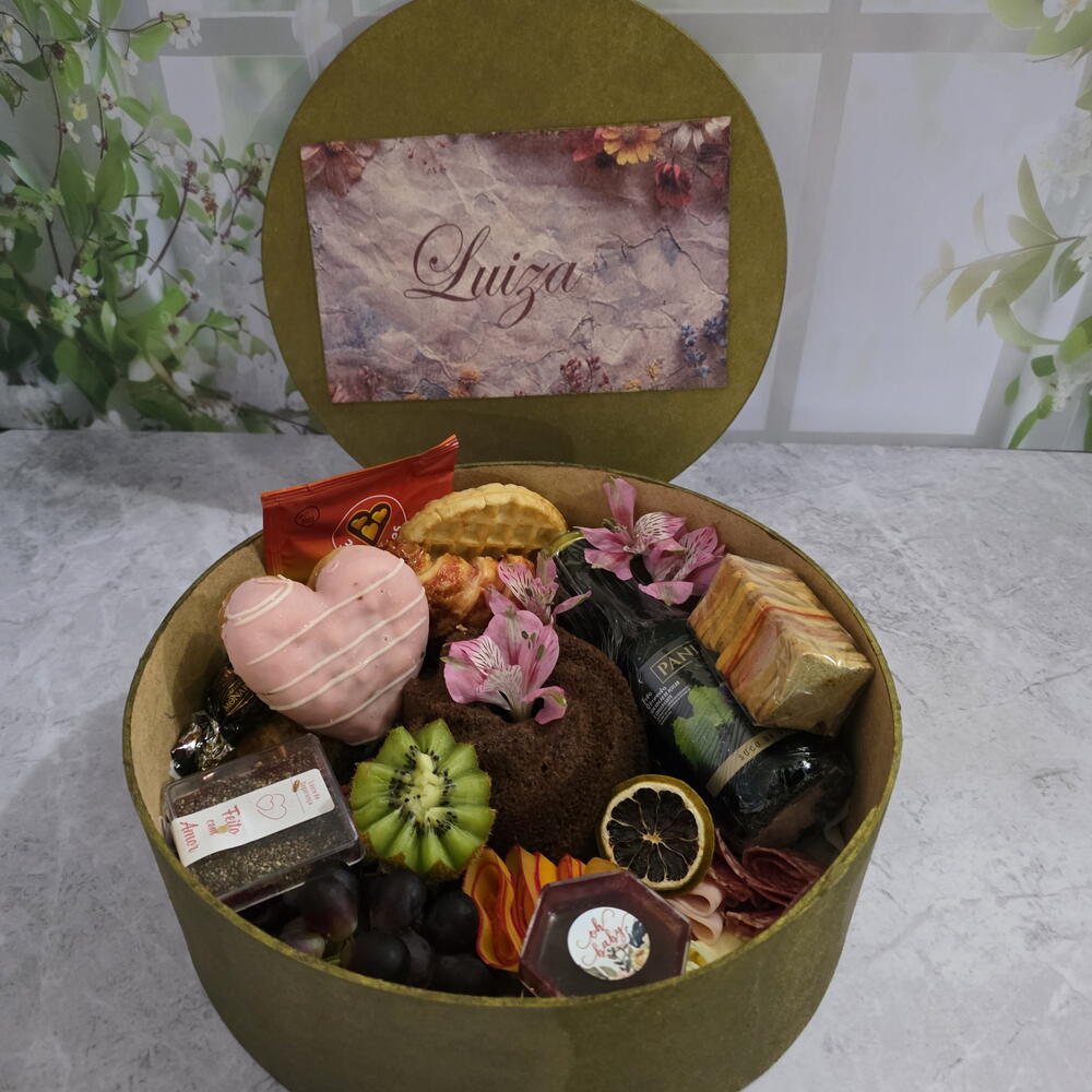 Café da Manhã sem lactose Desperte seus sentidos com o nosso café sem lactose, uma seleção deliciosa e equilibrada, perfeita para começar o dia de forma saudável e saborosa. Ideal para quem busca uma alimentação leve sem abrir mão do prazer. Composição do Produto: 1 Pão 100% Integral com Grãos: Saboroso e nutritivo, perfeito para sua primeira refeição. frutas do dia. 1 Porção de Mix de Castanhas: Crocante e cheia de energia. 1 Drip Coffee: Café fresco, feito na hora para você saborear. 1 chá importado 1 Porção de Queijo sem lactose padrão minas: O clássico que combina com tudo. 1 Porção de Salame Tipo Italiano: Um toque de sofisticação e sabor. 1 porção de peito de peru, lombo e presunto. 1 Antepasto de berineja de 180g: Acompanhamento perfeito para seu pão. 1 iogurte sem lactose 1 Porção de Mel: Para adoçar naturalmente seu dia. 1 Biscoitos importados sem lactose 1 mini bolo sem lactose/leite 1 muffim zero lactose 1 Suco Integral sem Açúcar: Refrescante e nutritivo. 1 Geleia de framboesas ou do dia. Adoçando sua refeição sem culpa. 1 Mini Arranjo Floral: Para adicionar um charme especial à sua mesa. Embalagem MDF/Descartáveis Natural: Prática e ecológica. Finalização com Fita e Flores: Um toque delicado e elegante. Box Personalizada: Perfeita para presentear. Feita na caixa de madeira pintada e personalizada. 01 Caneca Personalizada: com fotos, frases e nome A Experiência Completa Transforme seu café da manhã em um momento único com o nosso café sem lactose. Ideal para presentear em datas especiais ou simplesmente para aproveitar com quem você ama. Cada item foi cuidadosamente selecionado para proporcionar uma experiência saborosa e saudável. Faça do seu dia um momento especial! Surpreenda-se com a combinação perfeita de sabores e a apresentação encantadora do nosso café da manhã.