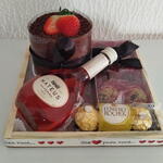 ferrero rocher - 3 pcs brigadeiros - 8 pcs mini vinho - 1 pcs bandeja - 1 pcs bento cake - 1 pcs cartão com msg - 1 pcs