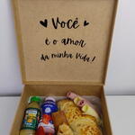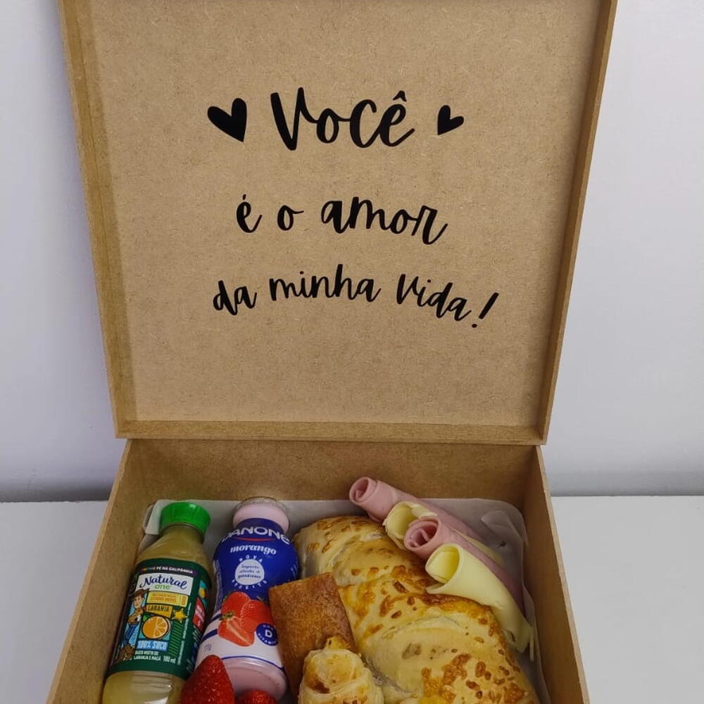 suco - 1 pcs frios - 4 pcs pão de queijo - 3 pcs polenguinho - 2 pcs mini bolo - 1 pcs mini geléia - 1 pcs danone - 1 pcs drip coffe - 1 pcs frutas da época - 2 pcs pão parmesão - 1 pcs mini torrada - 1 pcs caixa em mdf personalizada - 1 pcs mini croassaint - 3 pcs mini carolina - 3 pcs