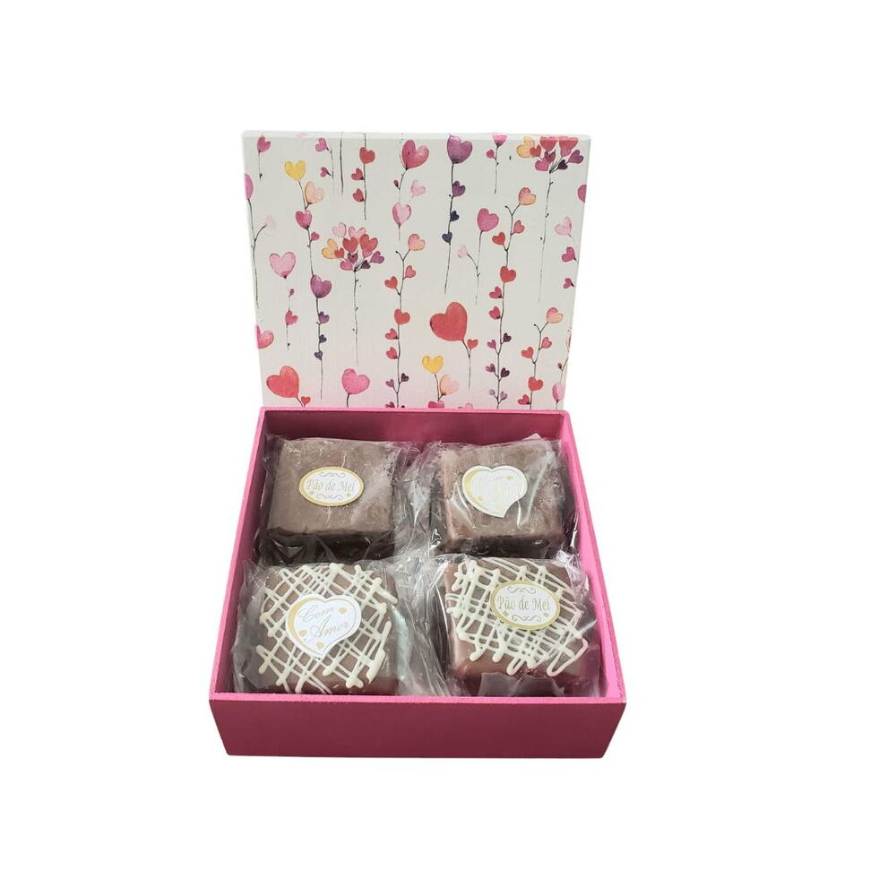 recheados - 1 pcs caixa em mdf pintadas a mão - 1 pcs com tampa estampada estilo decoupage - 1 pcs pães de mel caseiros - 1 pcs cobertos com chocolate ao leite - 1 pcs