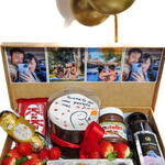 nutella - 1 pcs cartão personalizado - 1 pcs kit kat - 1 pcs ferrero rocher - 3 pcs morangos - 1 pcs brigadeiros gourmet - 8 pcs bolo bento cake personalizado - 1 pcs suco (ou coca cola) - 1 pcs uva (cacho) - 1 pcs