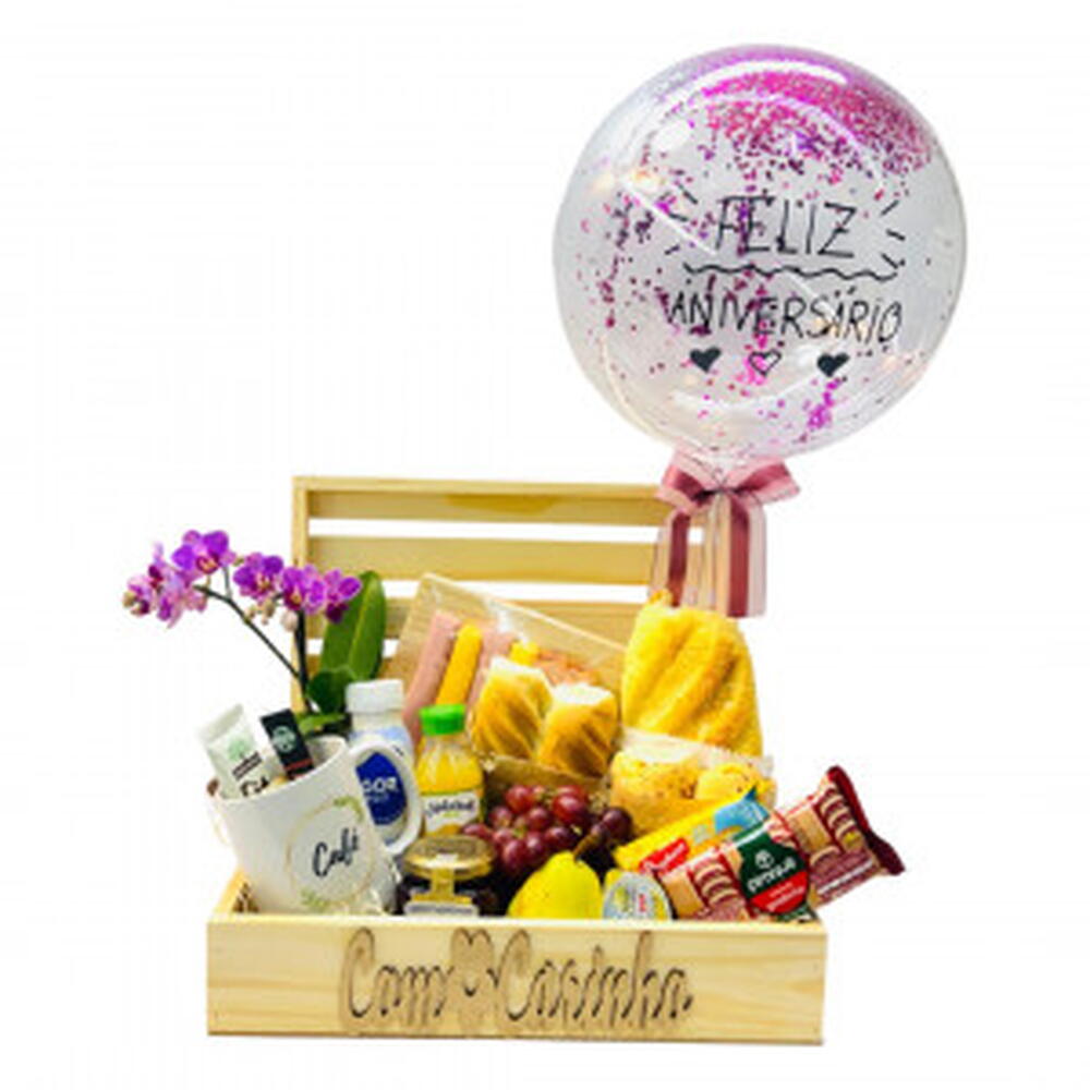 Surpreenda com a Caixa Orquídea Café da Manhã: orquídea natural, pães frescos, frutas, suco, café e balão personalizado. O presente ideal para aniversários e momentos especiais. Informações sobre Entrega --------------------------------------- * Entregamos para São Paulo, grande São Paulo e ABCD. * De segunda à sexta, entregamos em até 3 horas ou no mesmo dia, para pedidos feitos até às 15h00. * Sábados, entregamos no mesmo dia se o pedido for até às 10h00.