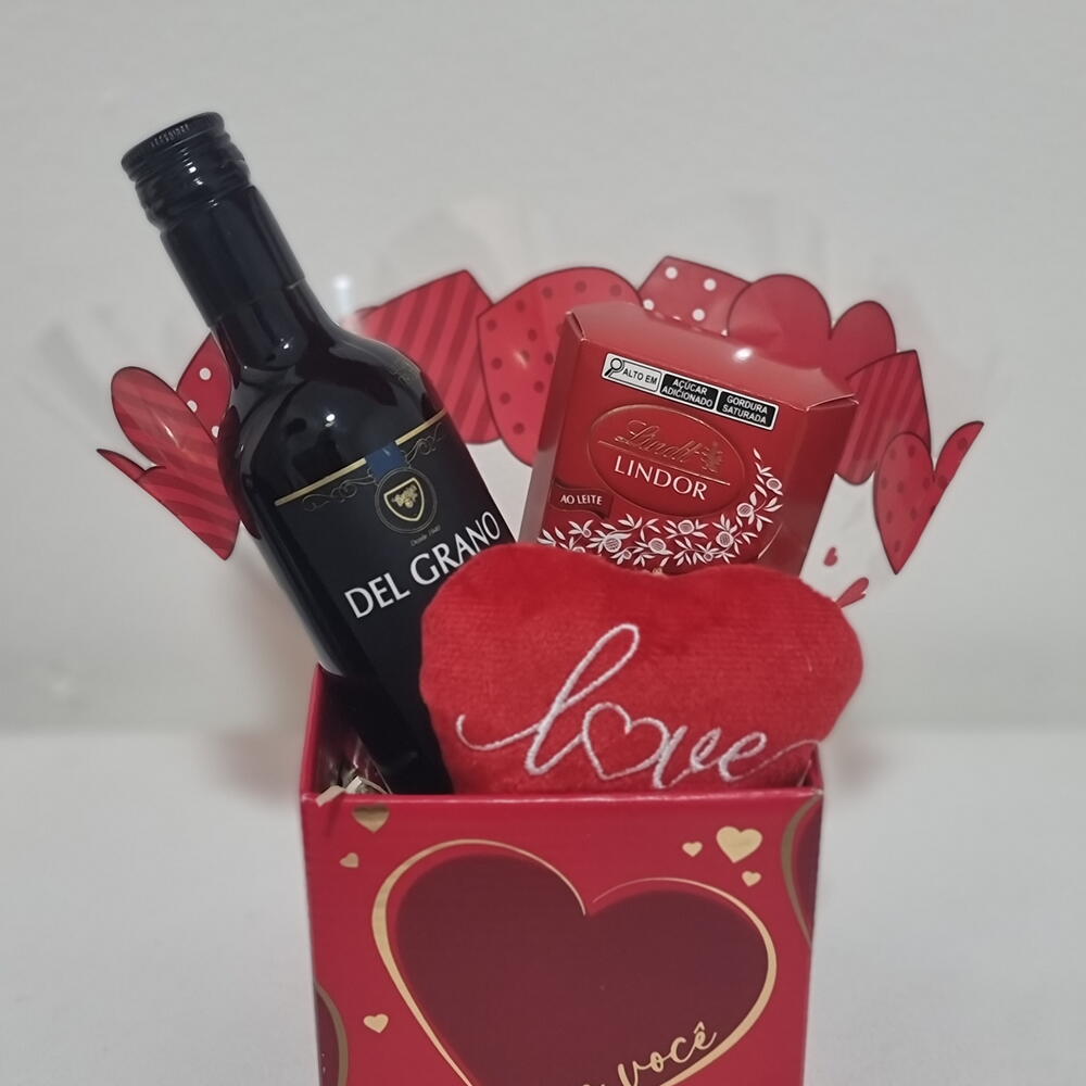 bombom lindt 37g - 1 pcs coração de pelúcia pequeno - 1 pcs vinho del grano suave 250ml - 1 pcs acompanha balão - 1 pcs cachepot vermelho - 1 pcs