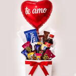 Surpreenda aquela pessoa especial com esta cesta de chocolate incrivelmente elegante. A cesta inclui 1 unidade refrescante de Coca-Cola, um deleite para o paladar com 12 unidades de bombons sortidos e uma deliciosa barra de chocolate Lacta ou Nestlé. Para tornar a sua surpresa ainda mais memorável, acompanha a cesta um balão metalizado em formato de coração, com a mensagem Te amo, que expressa seu afeto e deixará o dia do presenteado ainda mais doce e especial.