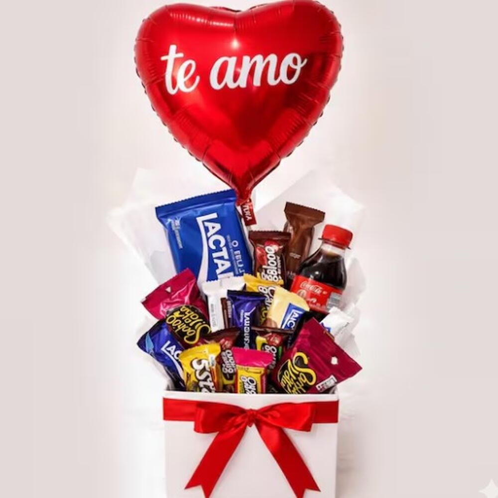 coca-cola - 1 pcs bombons sortidos - 12 pcs barra de chocolate lacta ou nestlé - 1 pcs balão metalizado em formato de coração “te amo” - 1 pcs