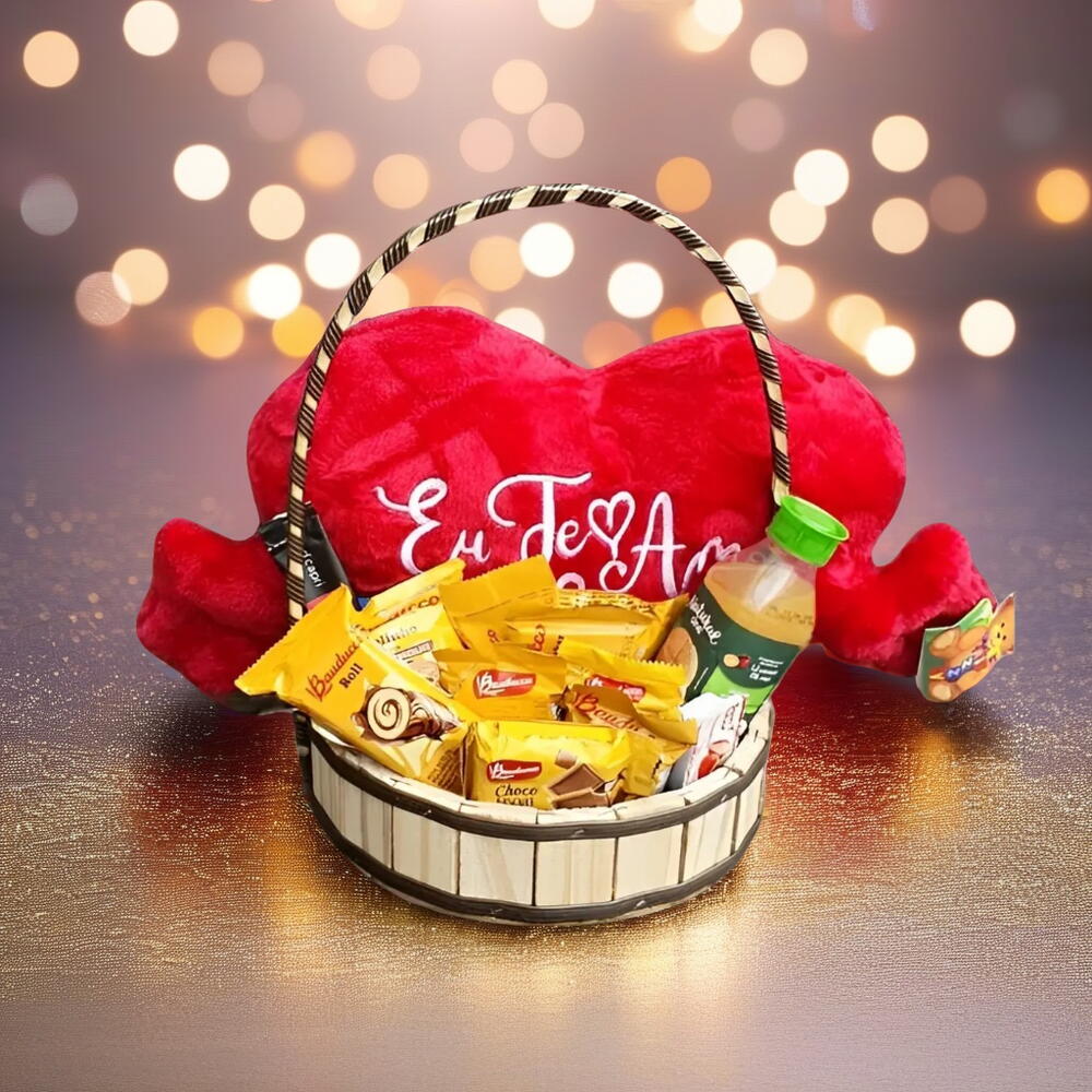 bolinho bauducco - 1 pcs café solúvel - 1 pcs cesta - 1 pcs laço - 1 pcs torrada - 1 pcs manteiga - 1 pcs geleia - 1 pcs adoçante - 1 pcs açúcar - 1 pcs embalagem celofane - 1 pcs pelúcia coração eu te amo - 1 pcs suco natural one - 1 pcs biscoitos sortidos - 5 pcs choco biscuit - 1 pcs roll bauducco - 1 pcs