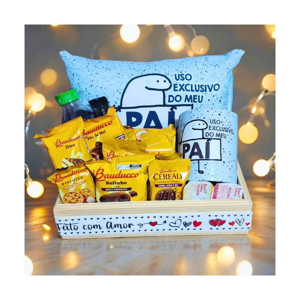 Cesta Cafe Da Manhã/Tarde Com Almofada E Caneca Flork "Uso Exclusivo do Meu Pai"