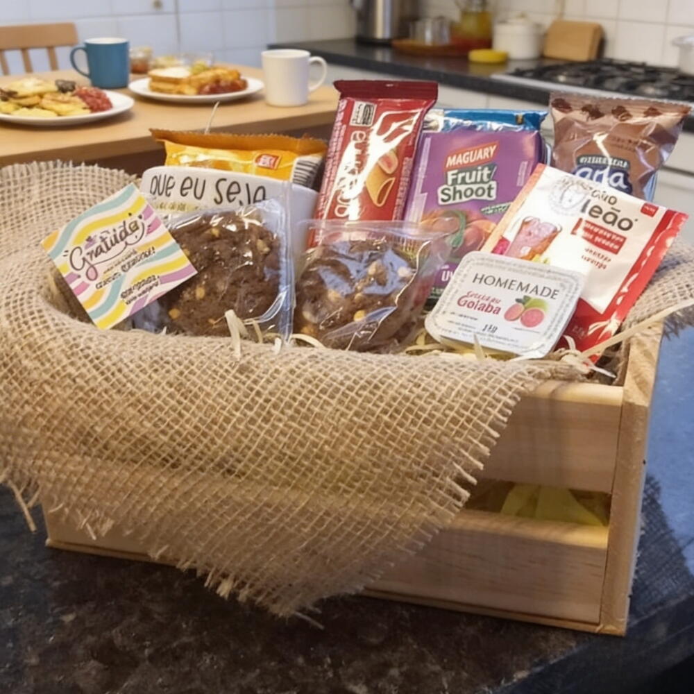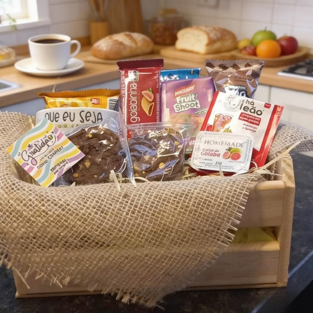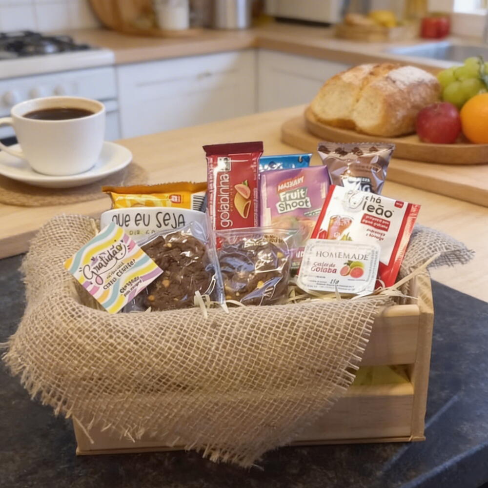 Cesta Café da Tarde – Escolha Perfeita para Presentear! 🎁 Não precisa ser uma ocasião especial para surpreender. Com a nossa cesta, qualquer dia vira motivo para comemoração! Itens inclusos: ✅ Caixa de madeira rústica e reutilizável ✅ Caneca de cerâmica exclusiva ✅ 1x Cook (doce) ✅ 1x Bolinho Ana Maria ✅ 1x Sachê de chá aromático ✅ 1x Biscoito Club Social ✅ 1x Suquinho natural ✅ 1x Goiabinha ✅ Torradas crocantes ✅ Geleia Com uma combinação de doces, salgados e bebidas, essa cesta agrada a todos os gostos. Ideal para um lanche da tarde caprichado, um café da manhã diferenciado ou até mesmo um presente corporativo com muito carinho. Consulte valores e disponibilidade! Envio para toda a cidade. 💌