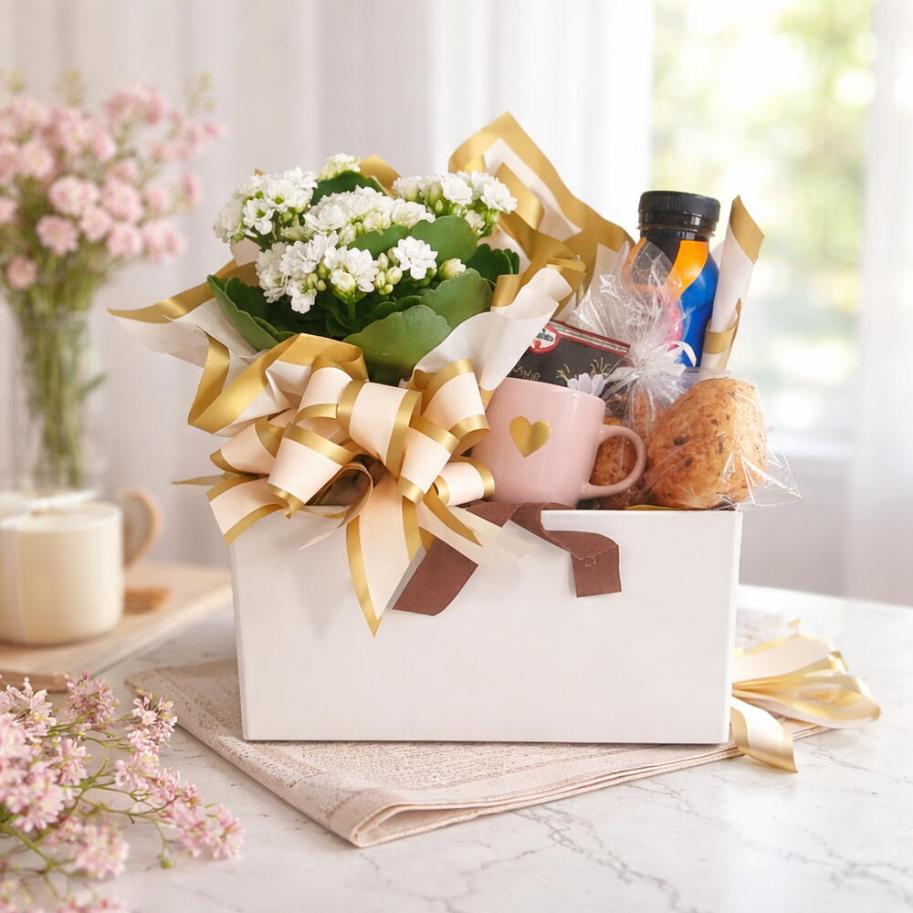 Descubra a alegria de desfrutar da manhã com esta elegante Cesta de Café da Manhã. Inclui uma caixa cartonada exclusiva, repleta de guloseimas matinais indispensáveis. Delicie-se com a sofisticação de um chá Twings, com dobro de encanto para duas fruições únicas. Acrescente um toque adocicado à sua manhã com uma bebida pronta a base de café ou chocolate, prometendo ser o deleite perfeito para abrir o dia. Esta cesta também tem o poder de trazer a natureza para perto de você com um lindo vaso de flor Calandiva, e uma mini caneca para fazer o seu dia começar bem. E não podemos esquecer de mencionar os deliciosos pães brioche salgados, feitos artesanalmente, para satisfazer a sua fome matinal.