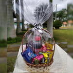 sonho de valsa - 1 pcs laço decorativo - 1 pcs chocolate prestígio - 1 pcs wafer bauducco - 1 pcs coca cola pequena - 1 pcs mms chocolate - 1 pcs goiabinha ( bauducco ) - 1 pcs ouro branco - 1 pcs cesta de vime com alça - 1 pcs bolacha panco - 1 pcs