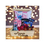 Cesta Chocolates "Amo Você" com Caneca e Almofada "Com Você" Stitch