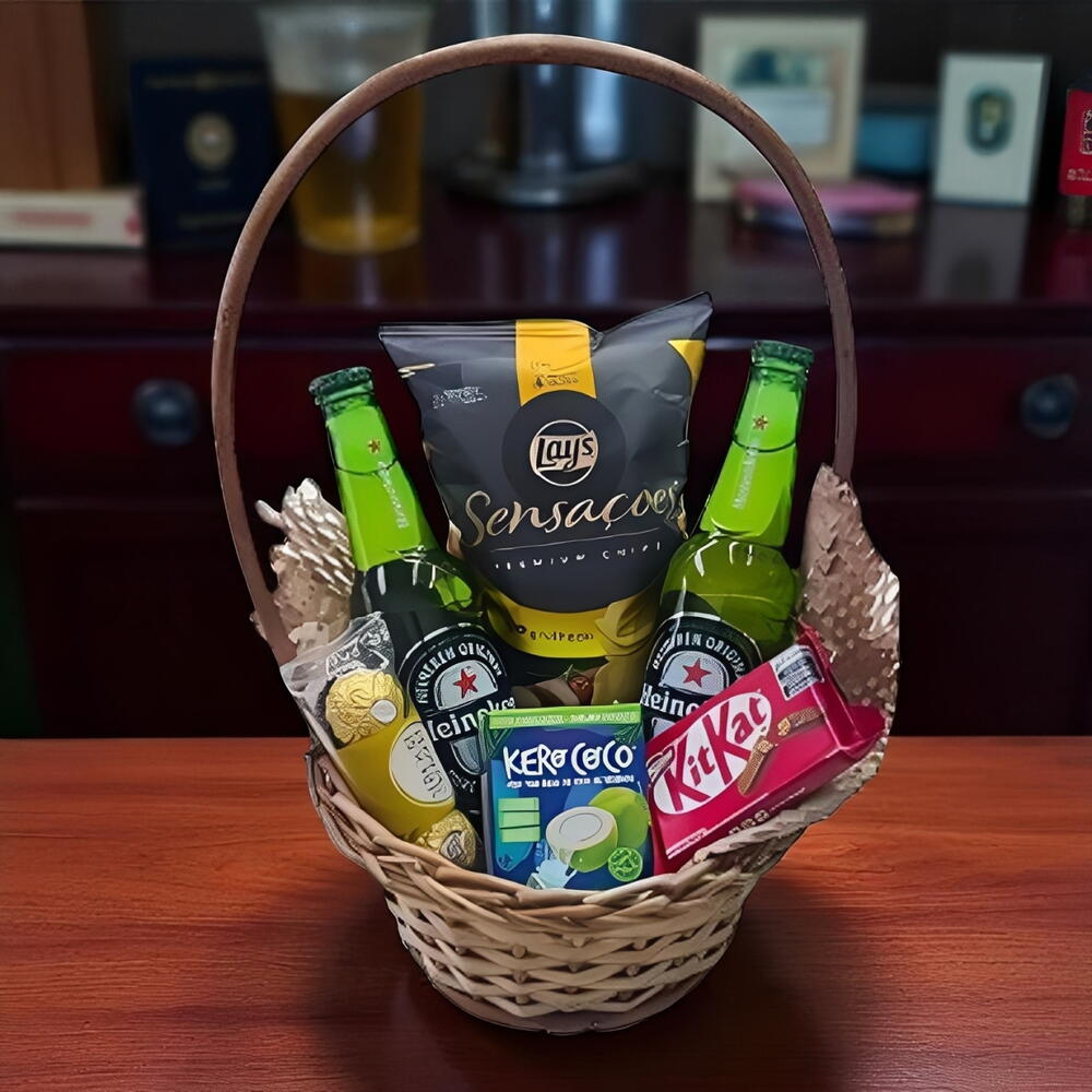 Este presente excepcionalmente montado é a mistura perfeita de indulgência e frescor. Com um conjunto de duas cervejas Heineken, amadas em todo o mundo, ele promete ser o protagonista de qualquer festa ou celebração. Acompanhada por um pacote de Batata Sensações, esta oferta combina o prazer crocante de batatas fritas com o sabor de uma cerveja gelada. Adicionamos uma Água de Coco de 270ml para um toque de frescor tropical. Para torná-lo verdadeiramente inesquecível, incluímos também três unidades da luxuosa Ferrero Rocher e um delicioso Kitkat, oferecendo uma experiência adocicada maravilhosa como epílogo a essa jornada repleta de sabor.