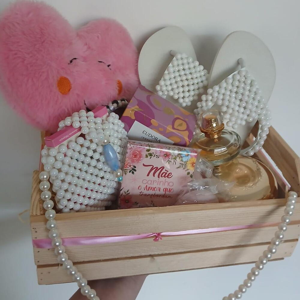 Presente essa cesta de beleza majestosa como um presente perfeito. Embalada com cuidado, essa cesta contém uma unidade de pelúcia macia e fofa, um kit cosmético para mimos de banho de luxo, produtos essenciais de maquiagem de alta qualidade para um look impecável, uma elegante havaina pérola de tamanho 36 para conforto e estilo, um perfume sofisticado para uma presença encantadora, uma bolsa de miçangas para adicionar um toque de glamour ao dia a dia da sortuda que vai recebê-la e, por fim, uma linda cesta para armazenar tudo isso. Este presente é um pacote completo para mimos e autocuidado. Tudo embalado em uma única e elegante caixa de presente. Uma escolha perfeita para surpreender e agradar!