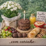 manteiga - 1 pcs brigadeiros - 1 pcs suco natural - 1 pcs café - 1 pcs mini bolo - 1 pcs flor especial - 1 pcs * frutas frescas selecionadas - 1 pcs pães e doces artesanais - 1 pcs plaquinha decorativa com mensagem - 1 pcs xícara com formato de coração - 1 pcs geleia e doce de leite - 1 pcs