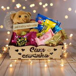 Encante alguém especial com a nossa adorável Cesta Mini Encanto Com Carinho e com chocolates. Esta cesta encantadora é cuidadosamente montada com uma variedade de Chocolates, além da Pelúcia com plaquinha Você É Minha Melhor Amiga, que irá encantar e surpreender a Pessoa presenteada. Seja para celebrar um aniversário, expressar gratidão ou simplesmente mostrar que você está pensando neles, a Cesta Mini Encanto é uma escolha perfeita.