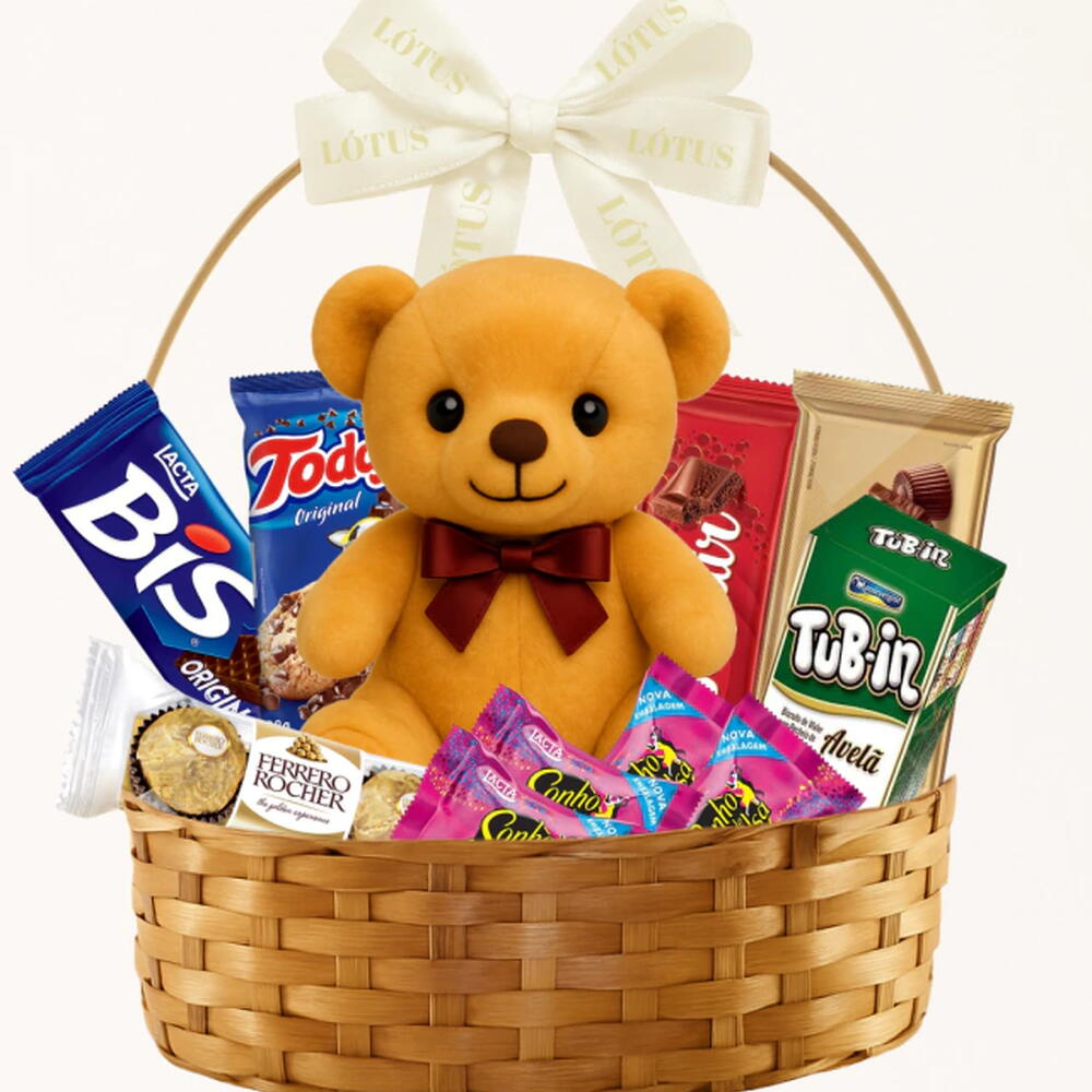 Apaixonados por chocolates vão se deliciar com a Cesta de Chocolates Doce Guloseima. O presente que só de olhar já dá água na boca e vai adoçar o Dia daquela pessoa incrível. Dentro da cesta você encontrará uma variedade de chocolates deliciosos e famosos, são eles: 1 Tub in, 1 Suflair, 1 barra de Alpino, 1 Cookie, 1 Sonho de Valsa, 3 bombons Ferrero Rocher e 1 caixa de Bis. Sem contar o charme do Urso de Pelúcia para demonstrar todo o amor e carinho. Organizados em uma linda cesta de vime, finalizada com papel celofane e laço de cetim, com tantas guloseimas deliciosas e um brinquedo macio e fofo, este presente, sem dúvida, fará com que aquela pessoa se sinta amada e especial.