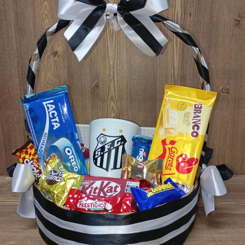 Surpreenda quem você ama com essa cesta incrível do Santos! Ideal para aniversários, datas especiais ou simplesmente para demonstrar carinho com muito estilo santista!