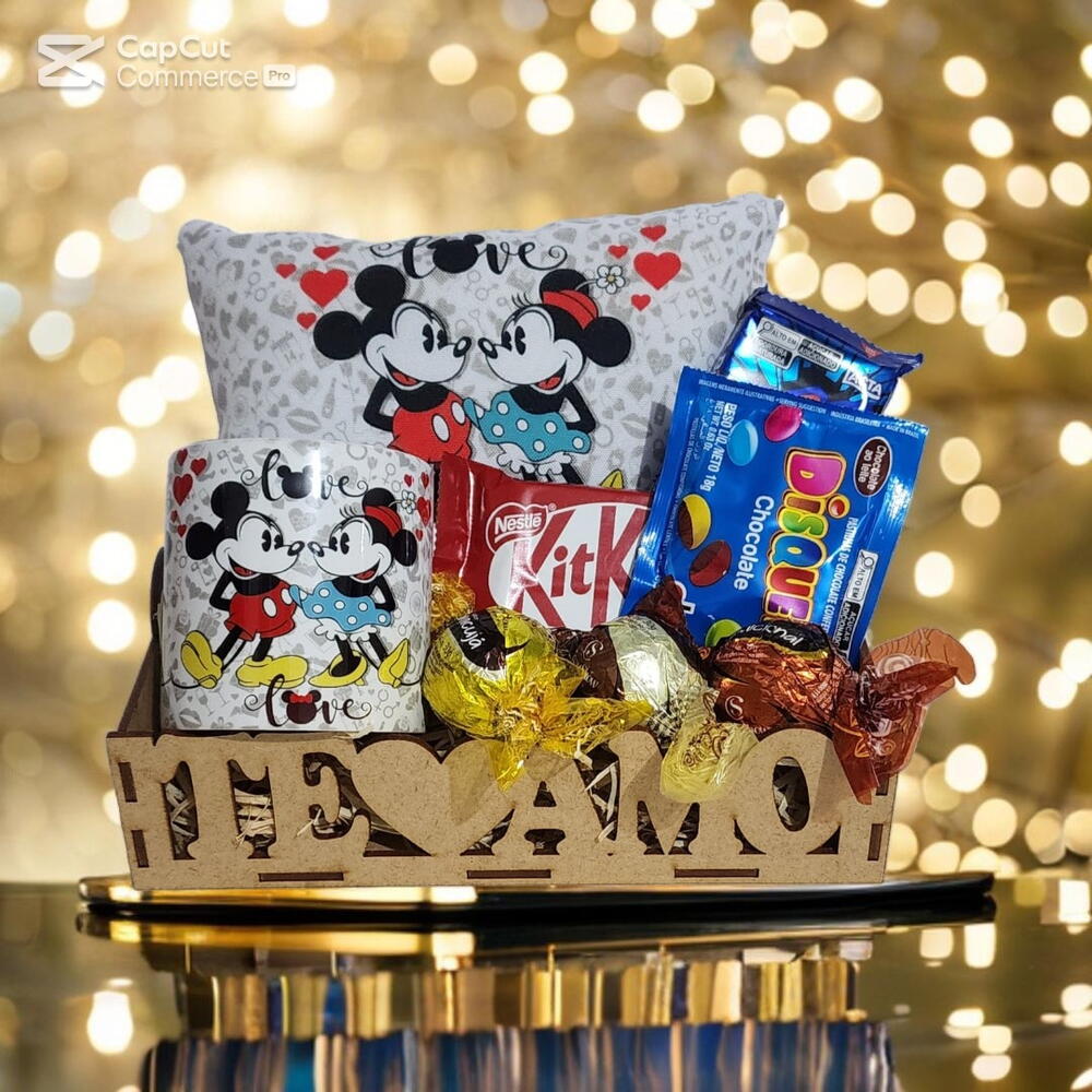 Transforme o Dia de alguém com a nossa exclusiva Cesta Chocolates Te Amo com Caneca e linda Almofada Love Mickey e Minnie. Cuidadosamente elaborada, esta cesta transmite um momento único e incrível a se viver. Seja para celebrar um aniversário, aniversário de namoro ou simplesmente surpreender alguém especial, nossa cesta de chocolates é a escolha perfeita para todas as ocasiões. Montada e embalada com um toque de elegância, tornando-a não apenas uma delícia para o paladar, mas também um presente visualmente encantador e único.