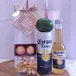 Este é um presente ideal para celebrar uma ocasião especial. Apresentado numa elegante sacola de plástico rígido e fosco, inclui um encantador cartão e laço que adiciona um toque de classe ao produto. O conjunto contém uma Coronita refrescante e uma lata de Corona de 350ml, perfeito para quem aprecia uma boa cerveja. Acompanhado de um saboroso limão e uma porção de amendoins reconfortantes, apresentados numa atraente caixinha de acrílicos. Como toque final, o conjunto contém dois bombons Ferrero Rocher apresentados numa caixinha de kraft. Este presente é a combinação perfeita de sabor e elegância.