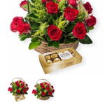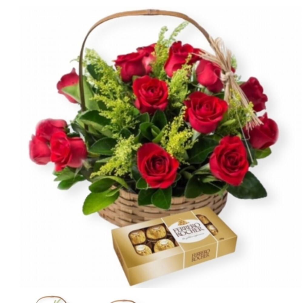 Boa surpresa e apelo inigualável, nosso pacote Flores e Chocolate é um verdadeiro mimo para os sentidos. Composto por oito aveludados bombons Ferrero Rocher cuidadosamente acondicionados, este conjunto promete uma deliciosa experiência gourmet. Além das guloseimas, a oferta inclui uma cesta de vime handmade que adiciona um toque rústico e acolhedor. Complementando o cenário, doze rosas luxuriantes adornam o conjunto, embora a cor possa variar, cada variação promete uma exuberância única.