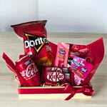 Esta cesta de aniversário é verdadeiramente uma delícia para todos os apreciadores de guloseimas. Recheada com um pacote de Doritos de 300g para deixar um pouco picante o seu paladar, acompanhado por uma refrescante lata de Coca Cola de 350ml. Para os amantes de doces, a cesta também contém irresistíveis ovinhos de amendoim de 145g, duas barras de chocolate KitKat de 41,5g e uma variedade de docinhos Fini de sabores sortidos em três embalagens de 15g cada. E para tornar este presente ainda mais especial, todos esses mimos são cuidadosamente arranjados em uma linda bandeja de madeira decorada, que adiciona um toque rústico e charmoso ao conjunto. Essa cesta de aniversário é o presente perfeito para celebrar o dia especial do seu ente querido de uma maneira doce e saborosa!