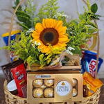 bombons ferrero rocher - 8 pcs nutella 140g - 1 pcs arranjo com 1 girassol - 1 pcs cesta decorativa - 1 pcs guloseimas diversas - 10 pcs