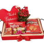Desfrute de uma indulgência de luxo com esta elegante cesta de chocolate. Ela é preenchida com 3 unidades de Ferrero Rocher, 2 bombons para desfrutar. Um pacote de Doritos oferece um contraste salgado para os doces. Adicione um toque de beleza natural com uma flor de Kalanchoe. Esta cesta também contém um coração de pelúcia para adicionar um toque de amor ao presente maravilhoso. Complete esta indulgência com uma barra de chocolate e uma bebida láctea para mergulhar no requinte.