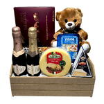 urso de pelúcia - 1 pcs caixa em mdf - 1 pcs espumante chandon brut rose 187 ml - 1 pcs queijo tipo gorgonzola 100 g - 1 pcs queijo tipo brie 115 g - 1 pcs queijo tipo provolone maturado 215 g - 1 pcs celofane + laço - 1 pcs espumante chandon reserve brut branco 187 ml - 1 pcs caixa de bombom de chocolate polonês 114g - 1 pcs