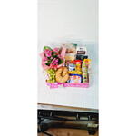 Cesta de Café da Manhã: composta por croissants, torradas, Kit Kat, suco, uvas, manteiga, Sucrilhos, achocolatado, queijo e presunto, café, biscoitos doces, flor plantada e sachê de geleia. Uma seleção de delícias para começar o dia com sabor e energia.