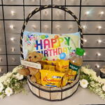 Cesta Feliz Aniversario Com Almofada "Happy Birthday" E Pelucia "Parabens"