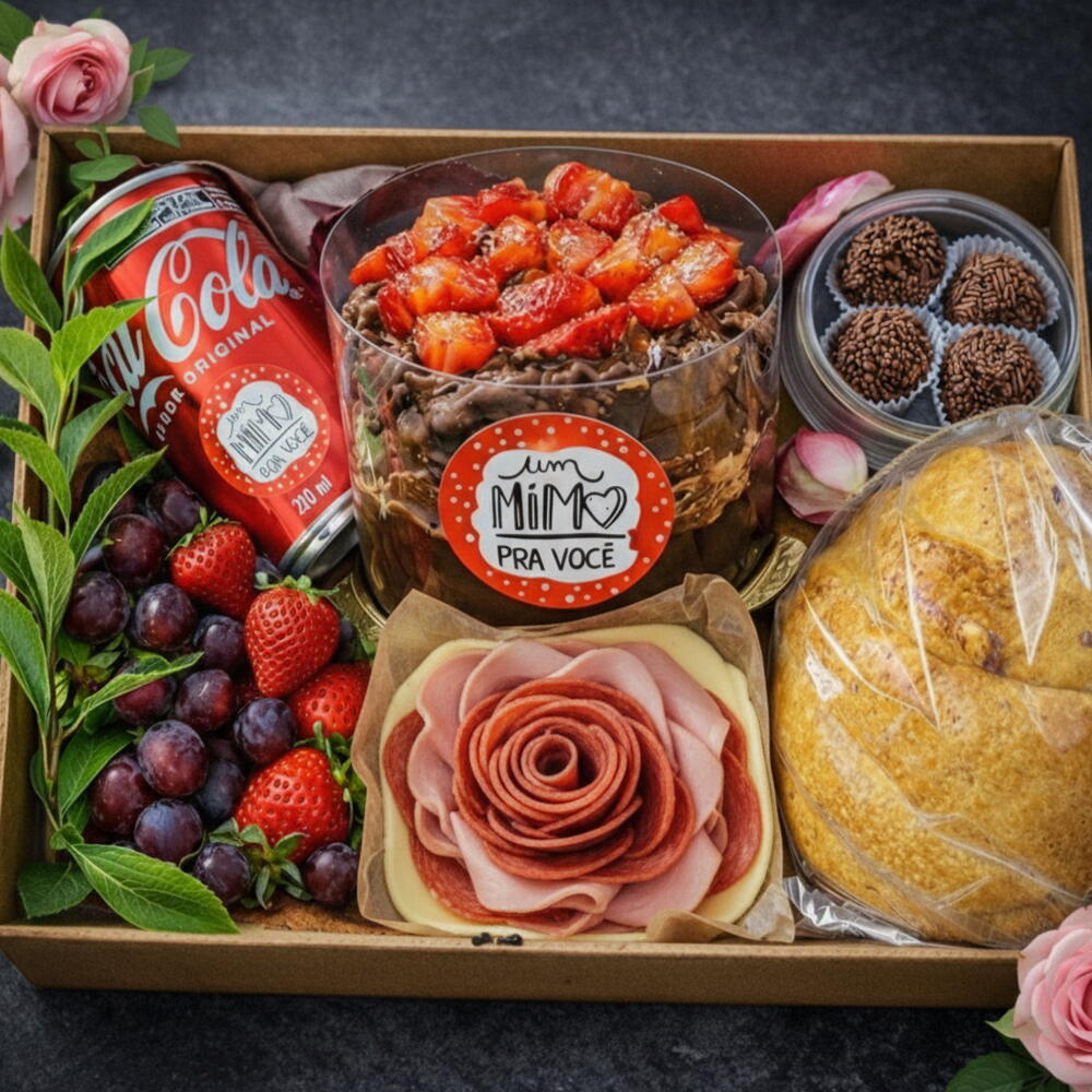 Aprecie um delicioso início de dia com a nossa Cesta de Café da Manhã! Este pacote matinal especial inclui um croissant recém-assado, uma porção generosa de frios e deliciosos brigadeiros. Também incluímos uma unidade de frutas frescas para acompanhar, um bolo com vela para tornar o momento ainda mais doce e uma Coca-Cola normal ou zero para complementar. Celebre um novo dia com sabor e alegria!