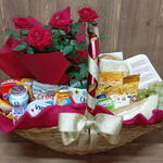 celofane - 1 pcs iogurte - 1 pcs caneca - 1 pcs pão de mel - 1 pcs capuccino - 1 pcs chá sachê - 1 pcs sucrilhos 30g - 1 pcs bolinho bauduco - 1 pcs clube social - 1 pcs torrada bauduco - 1 pcs 3g - 1 pcs laço decorativo - 1 pcs arranjo com 3 rosa vermelhas - 1 pcs sachê açúcar - 3 pcs sachê adoçante - 2 pcs suco dell vale 200ml - 1 pcs 100g de frios - 1 pcs 3 tipos de pães - 1 pcs 2 tipos de frutas - 1 pcs margarina sachê - 2 pcs torrada bauduco integral - 1 pcs wafer/bolinho - 1 pcs biscoito bauduco cream cracker - 2 pcs biscoito bauduco doce - 4 pcs guloseima - 1 pcs barra de chocolate bauduco - 1 pcs barra goiabinha bauduco - 1 pcs café granulado - 1 pcs achocolatado nescau 200ml - 1 pcs biscoito bauduco maisena - 1 pcs