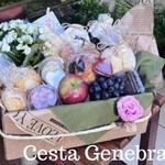 Cesta composta por: 1 sache Caputino 1 suco natural 300ml 1 iorgute 200ml 1 sache de granola 8 pães de queijo 1 cooke embalado 1 mini geleia de morango 1mini requeijão 2 mini croassan 2 pães francês 4 torradas 200 g de frios ( mussarela,presunto) 2 frutas ( da época) 2 rosquinha doce 1 vaso de flor kalanchoe 1 cesta artesanal