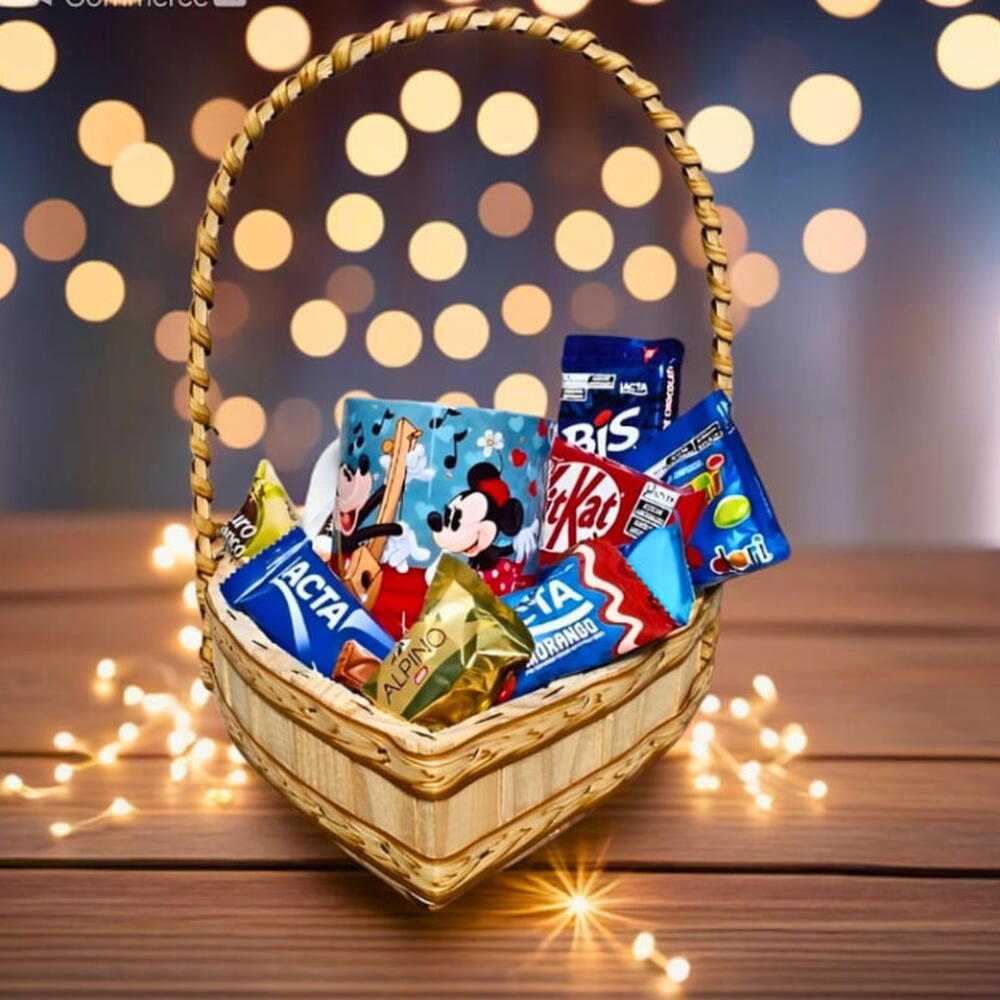 Surpreenda quem você ama com a nossa Cesta Guloseimas de coração, completa com uma Caneca Personalizada ( escolha a sua). Com a Cesta Coração de Chocolate e Caneca, você vai: Derreter o coração do seu amor com um presente doce e romântico. Criar um momento a dois inesquecível com sabores deliciosos e muito carinho. Demonstrar todo o seu amor e cuidado com um presente Original e personalizado. Surpreender seu amor com uma cesta completa e cheia de mimos especiais. E para finalizar o embrulho da cesta é com papel celofane e lindo laço, criando uma apresentação encantadora e elegante.