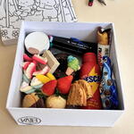 pão de queijo - 3 pcs waffle - 1 pcs morango - 2 pcs bolo de chocolate - 1 pcs nutella b ready - 1 pcs nescau - 1 pcs balas fini - 2 pcs nutella 140 g - 1 pcs mini oreo - 1 pcs caixa cartonada quadrada - 1 pcs marshmallow coloridos - 5 pcs caneta colorida - 4 pcs petit four com chocolate - 3 pcs