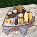 embalagem - 1 pcs laço - 1 pcs itens - 20 pcs composta por pães - 1 pcs bolachinhas recheadas - 1 pcs bolachinhas amanteigadas salgadas - 1 pcs cockies - 1 pcs beijinho ou brigadeiros - 1 pcs cesta em formato de coração decorada com laço - 1 pcs bownie - 1 pcs
