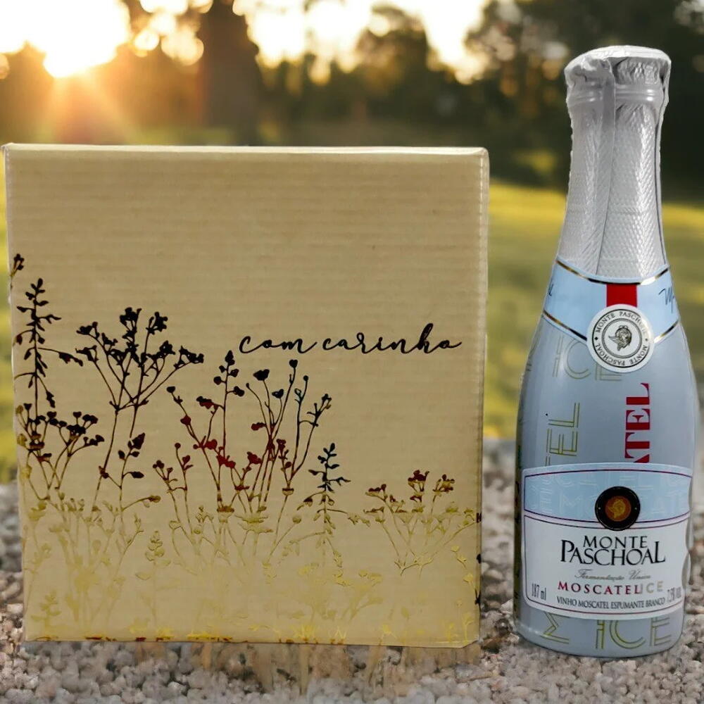 urso de pelúcia - 1 pcs celofane e laço - 1 pcs caixa de cartonagem - 1 pcs chocolate kit kat branco 41 g - 1 pcs mini vinho moscatel ice espumante branco 187 ml - 1 pcs alpino ao leite 85 g - 1 pcs
