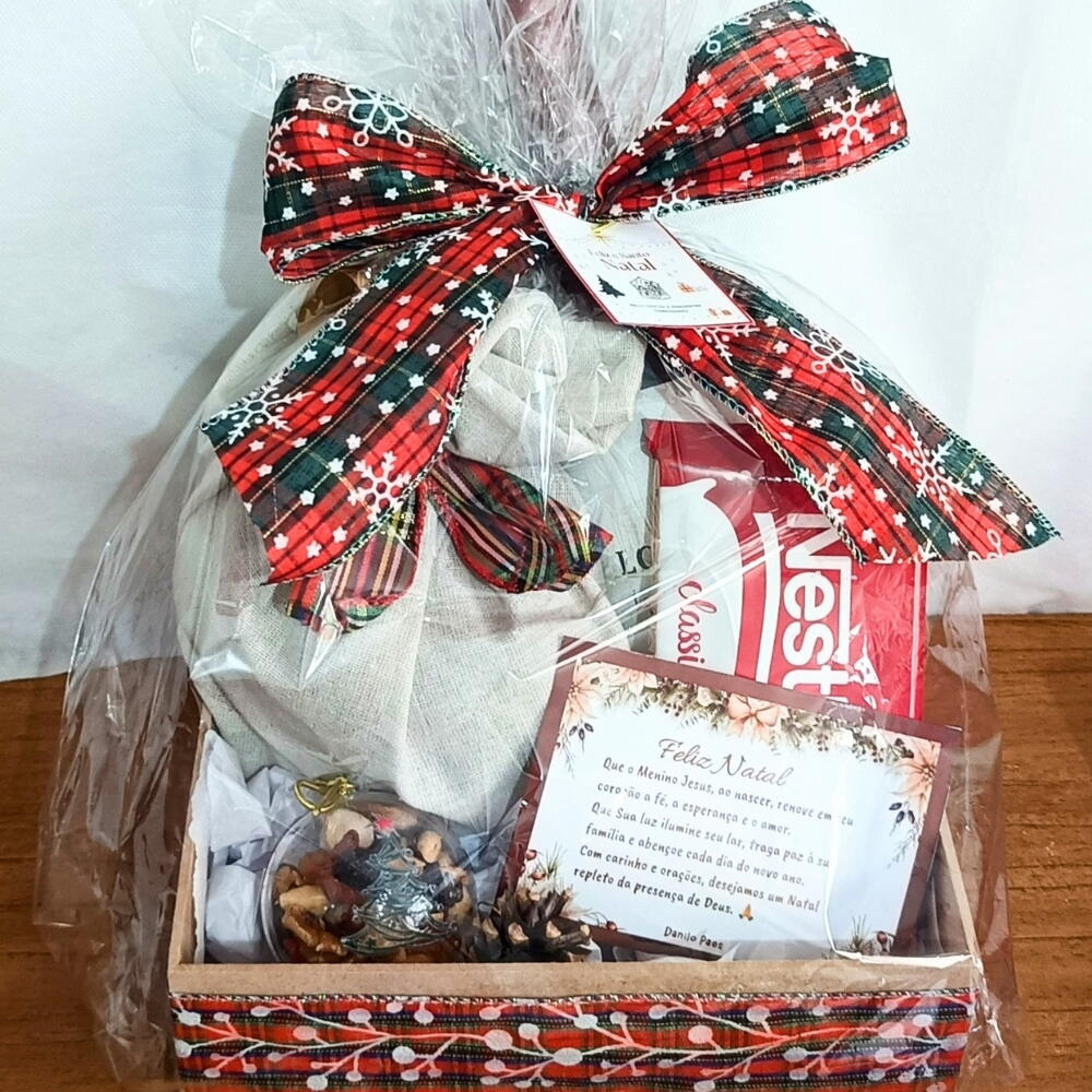 Celebre a temporada festiva com a nossa Cesta de Natal requintada. Com um panetone saboroso de 400 gr, um adorável vinho meio seco para harmonizar, uma barra de chocolate indulgente para satisfazer seus desejos doces, um mix de castanhas para um toque crocante e uma decoração natalina para adicionar um toque festivo ao seu lar. Esta cesta é a combinação perfeita de sabor e festividade. Perfeito para presentear, partilhar com os entes queridos ou simplesmente se deliciar durante as comemorações natalinas.