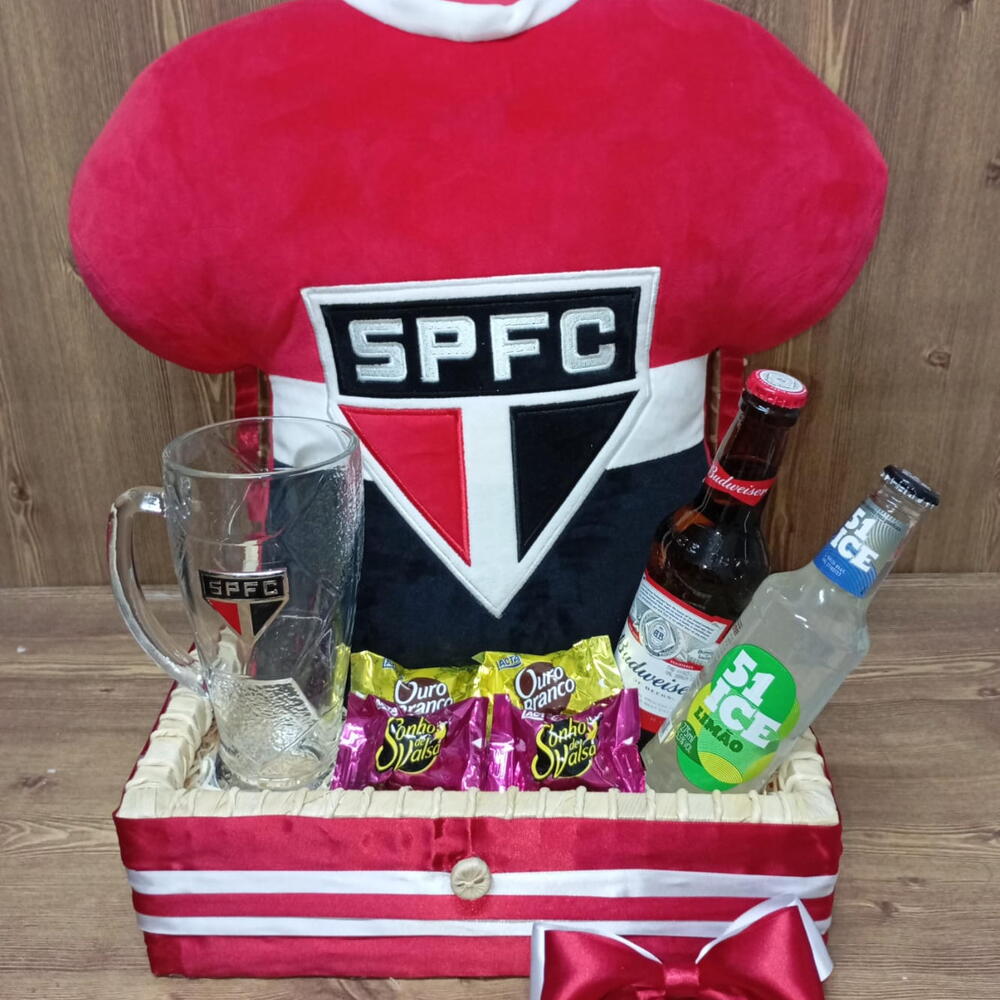 Este presente combinado é perfeito para os apaixonados por São Paulo! Ele inclui uma acolhedora almofada de São Paulo para decorar com orgulho o seu espaço favorito, uma taça elegante com brasão de São Paulo para degustar uma bebida com estilo, quatro indulgentes bombons para satisfazer os desejos de chocolate, uma garrafa de cerveja Budweiser para brindar aos bons momentos e um ice refrescante para quando precisar de um toque de frescura. É o presente perfeito para qualquer ocasião!